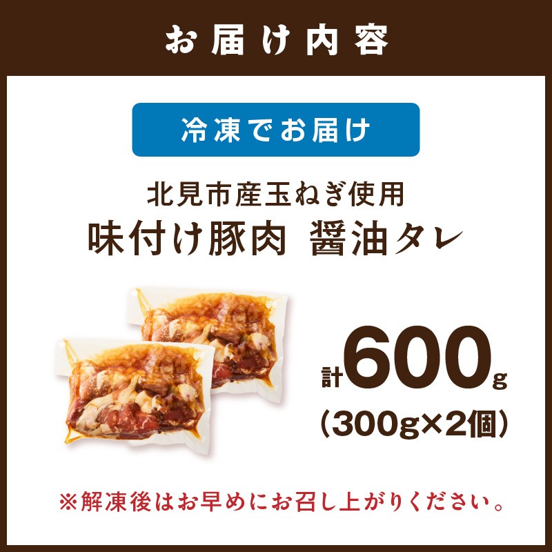 生産量日本一の北見市の玉ねぎを贅沢に味付けに使った豚肉 【予約:2025年12月から順次発送】北見市産玉ねぎ使用 味付け豚肉 醤油タレ 300g×2個 ( 肉 豚肉 たまねぎ タマネギ 焼肉 )【224-0016】