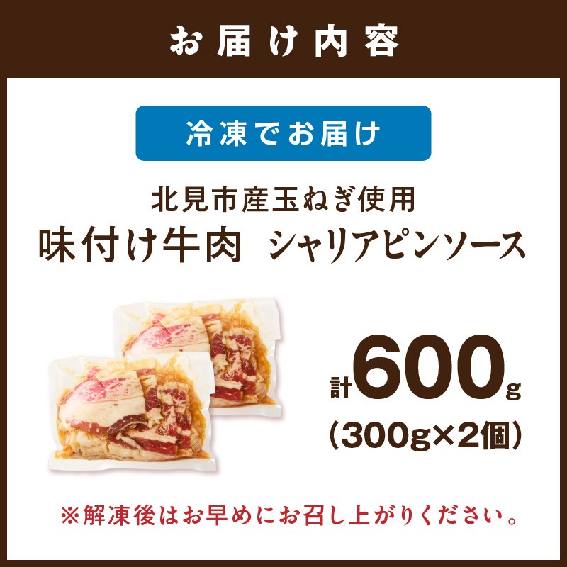 生産量日本一の北見市の玉ねぎを贅沢に味付けに使った牛肉 【予約:2025年12月から順次発送】北見市産玉ねぎ使用 味付け牛肉 シャリアピンソース 300g×2個 ( 肉 牛肉 たまねぎ タマネギ 焼肉 )【224-0014】