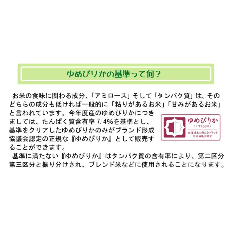 | 容量 | 5kg詰×1袋 名称:精白米 産地:北海道産 品種:ゆめぴりか 産年: 2025年9月中旬頃~2026年9月上旬頃:令和7年産 2026年9月中旬頃~2027年9月上旬頃:令和8年産 2027年9月中旬頃~2028年9月上旬頃:令和9年産 ※上記は新米切替時期の目安となっております。 天候や作柄によって新米への切り替え時期は前後する場合がございます。 使用割合:単一原料米 精米時期:米袋に記載 ※趣旨の記録及び生産記録による。 |