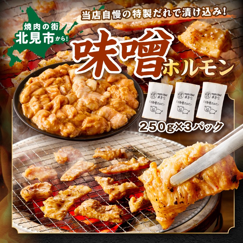 《7営業日以内に発送》北見味噌ホルモン 250g×3パック ( 焼肉 ホルモン 肉 にく みそ 味噌 )【205-0003】