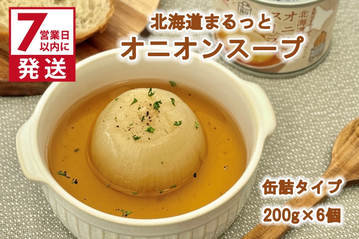 缶詰に、あの大人気スープと“北見たまねぎ”をまるごと1玉! 《7営業日以内に発送》北海道まるっとオニオンスープ 缶詰タイプ 6個 ( 玉ねぎ たまねぎ 加工品 スープ 簡単 )【188-0012】