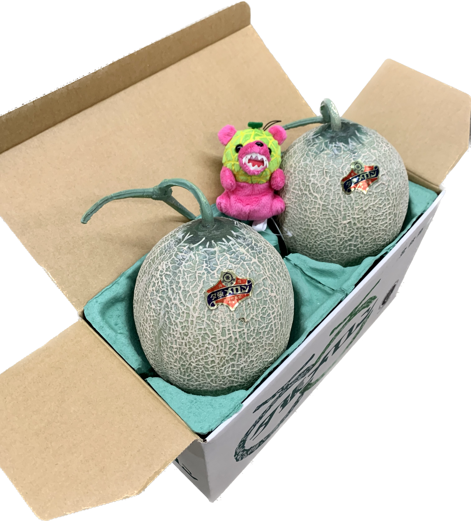 | 容量 | ・メロン熊くたくたストラップ(ピンク) 1個 ・夕張メロン(等級:優)2玉(1玉約1.3kg) |