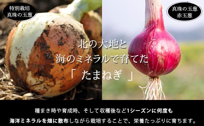 北の大地と海のミネラルで育てた玉葱「真珠の玉葱」特別栽培に赤玉葱5個入りのセット 真珠の玉葱 特別栽培 Lサイズ 5kg (赤玉葱5個入り) ≪海のミネラルで育てた特別栽培玉葱≫【50108】