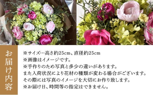 ガーデンで収穫した花材や自然採取の花材で自然の恵み溢れる作品を制作 美流渡の森 アーティフィシャルフラワー花瓶付ブーケ(ピンク系)