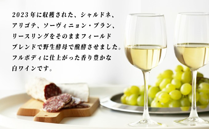 北海道岩見沢の自社管理畑ヴィンヤード・モゥで2023年に収穫されたシャルドネ、アリゴテ、ソーヴィニョン・ブラン、リースリングをそのままフィールドブレンドで、野生酵母で醗酵させました。フルボディに仕上がった香り豊かな白ワインです。