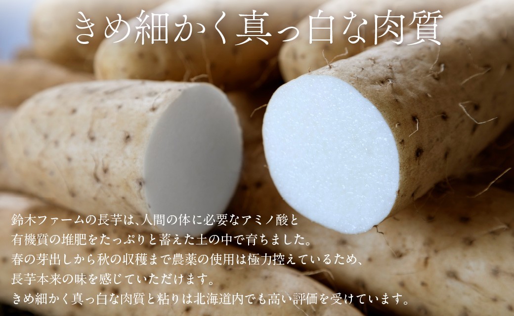 ※SUZUKI FARMでは、乾燥やおがくずのにおいが長芋に付くことを避けるため、長芋は洗わず、できるだけ土を落とした状態で一本ずつ紙に包んでお届けしております。