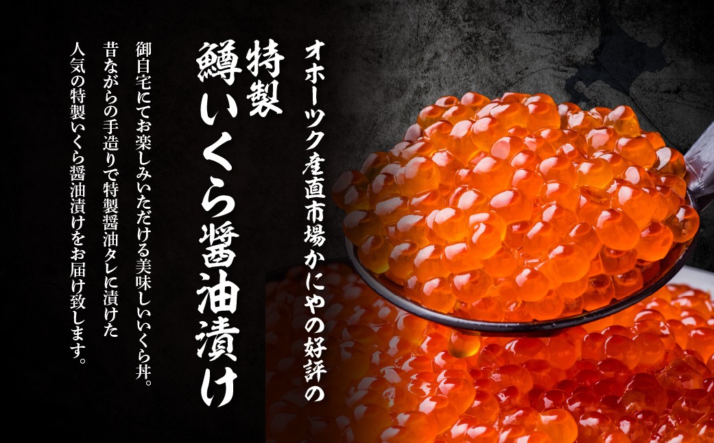 オホーツク産直市場かにやの好評の特製海鮮丼・イクラ丼・サーモンいくら丼の手作りの鱒いくら醤油漬けです。