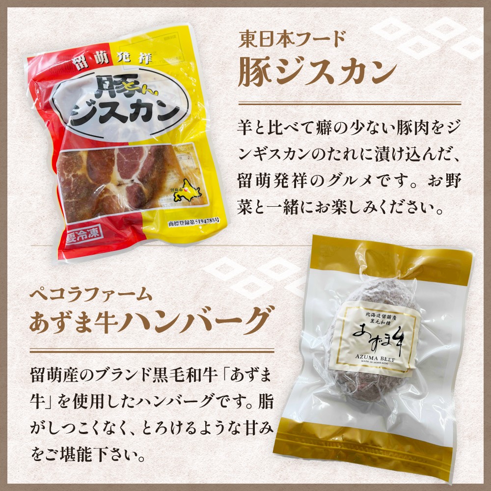 海の“ちょうどいい贅沢” ご飯もおかずも、これひとつで整う留萌特産品セットB 留萌特産品セットB 味付 数の子 たらこ 松前漬 豚ジスカン あずま牛 ハンバーグ かずのこ タラコ 松前漬け 豚 ジンギスカン タラコ 北海道 ギフト 贈答