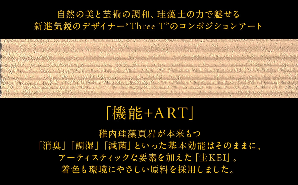 珪藻土が持つ「吸放湿」「消臭」「菌・ウィルス低減」などの優れた機能を活かしつつ、アーティスティックなデザインをプラス。