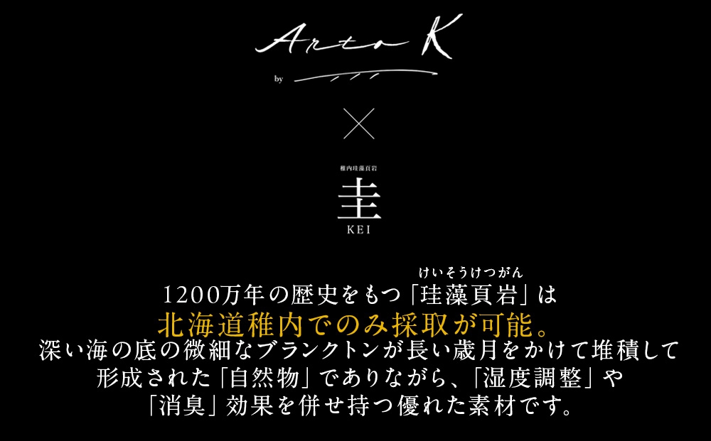 珪藻土が持つ「吸放湿」「消臭」「菌・ウィルス低減」などの優れた機能を活かしつつ、アーティスティックなデザインをプラス。