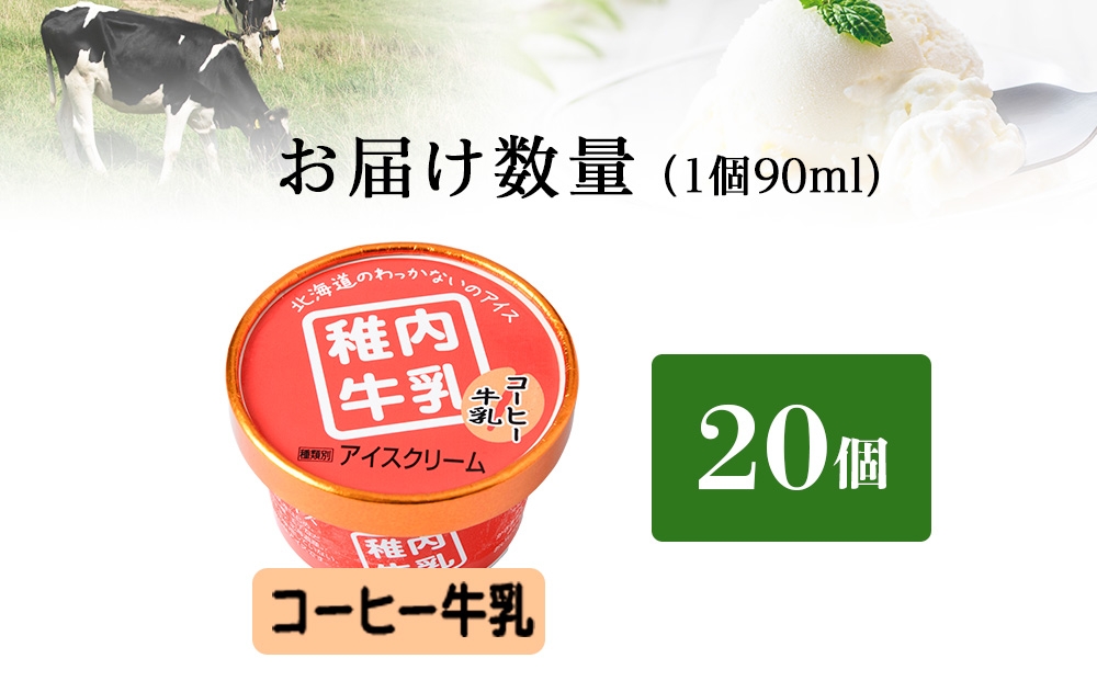 稚内牛乳 アイスクリーム コーヒー牛乳 20個セット(各90ml)