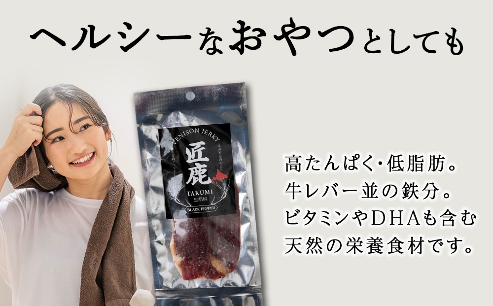 【北海道稚内産】エゾシカジャーキー 匠鹿 ブラックペッパー 4袋【狩人の匠】 鹿肉 エゾシカ エゾ鹿