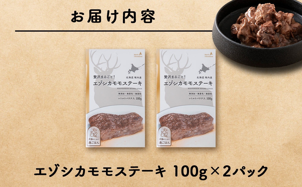 エゾシカモモステーキ100g【鹿ごはんシリーズ】 2パック エゾシカ エゾ鹿 鹿肉 ペットフード 犬のおやつ 犬のごはん 無添加 狩人の匠