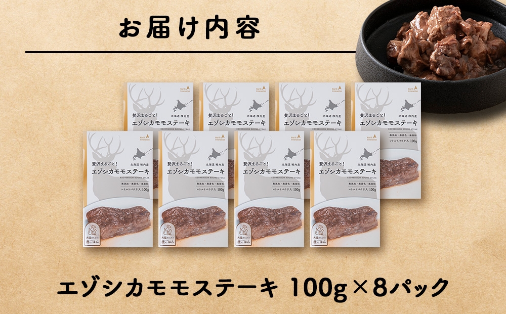 エゾシカモモステーキ100g【鹿ごはんシリーズ】 8パック エゾシカ エゾ鹿 鹿肉 ペットフード 犬のおやつ 犬のごはん 無添加 狩人の匠
