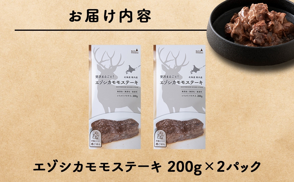 エゾシカモモステーキ200g【鹿ごはんシリーズ】 2パック エゾシカ エゾ鹿 鹿肉 ペットフード 犬のおやつ 犬のごはん 無添加 狩人の匠