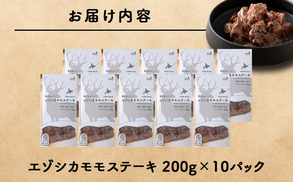 エゾシカモモステーキ200g【鹿ごはんシリーズ】 10パック エゾシカ エゾ鹿 鹿肉 ペットフード 犬のおやつ 犬のごはん 無添加 狩人の匠