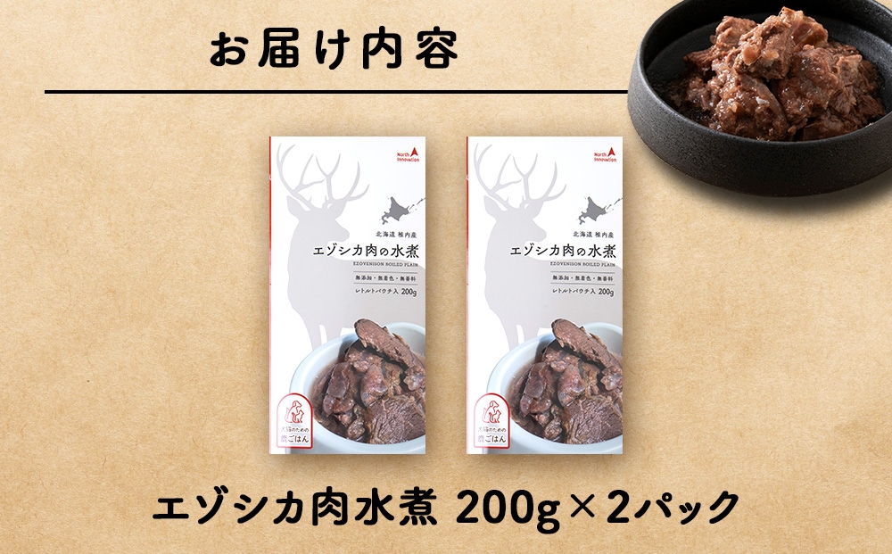 エゾシカ水煮200g【鹿ごはんシリーズ】 2パック エゾシカ エゾ鹿 鹿肉 ペットフード 犬のおやつ 犬のごはん 無添加 狩人の匠
