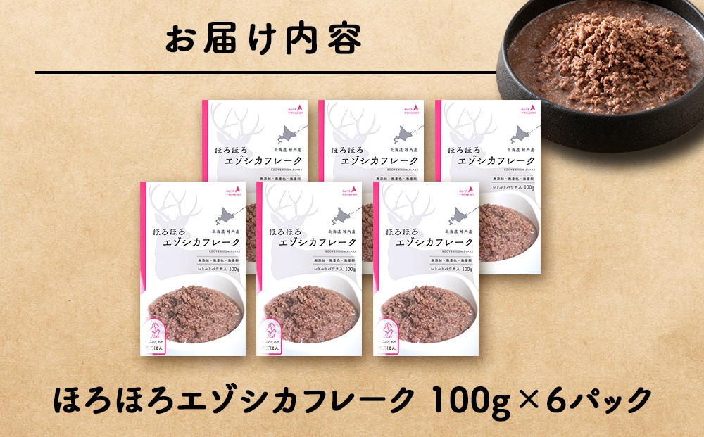ほろほろエゾシカフレーク100g【鹿ごはんシリーズ】 6パック エゾシカ エゾ鹿 鹿肉 ペットフード 犬のおやつ 犬のごはん 無添加 狩人の匠