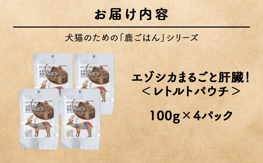 まるごと肝臓 4パック 【鹿ごはんまるごとシリーズ】エゾシカ エゾ鹿 鹿肉 ペットフード 犬のおやつ 犬のごはん 無添加 狩人の匠