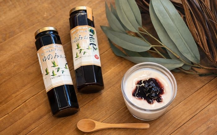 セットのソースは、果汁と果実の中間の性格を持つ、糖度と粘度を抑えた仕上がり。ハスカップ特有のきつい酸味やエグ味をまろやかに緩和しており、ヨーグルトやパンケーキはもちろん、お料理の隠し味にも最適です。