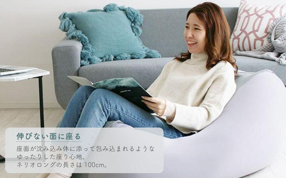 ビーズクッション nelio ロング 日本製 フォググレー74,000 円 柔らかなニット生地に発泡ビーズが体のラインに沿って心地よくフィットします。 - 常温便