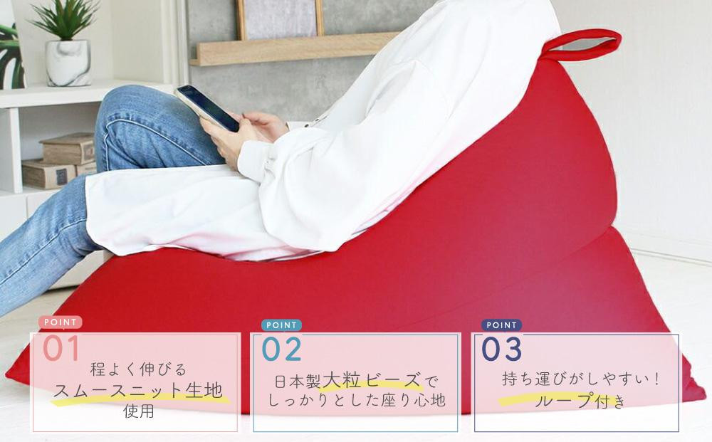 全面に程よく伸びるスムースニット生地を使用したビーズクッション。 ビーズクッション ポルトBIG 日本製 レッド