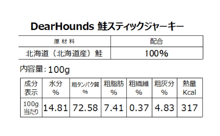 北海道の海の恵みを凝縮。良質な脂質とタンパク質が豊富な鮭100%の本格ジャーキー 愛犬・愛猫用おやつ 鮭 スティック ジャーキー 計200g(100g×2個) | ペットフード ペット用 ジャーキー ドッグフード おやつ | Dear Hounds [BOAE019]