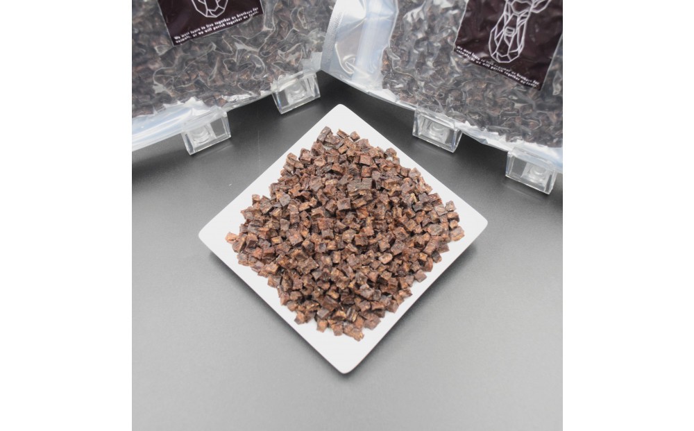 北海道産の【蝦夷鹿】を与えやすくキューブ状にしたジャーキー200gが2個のセット 合計400gとなります。