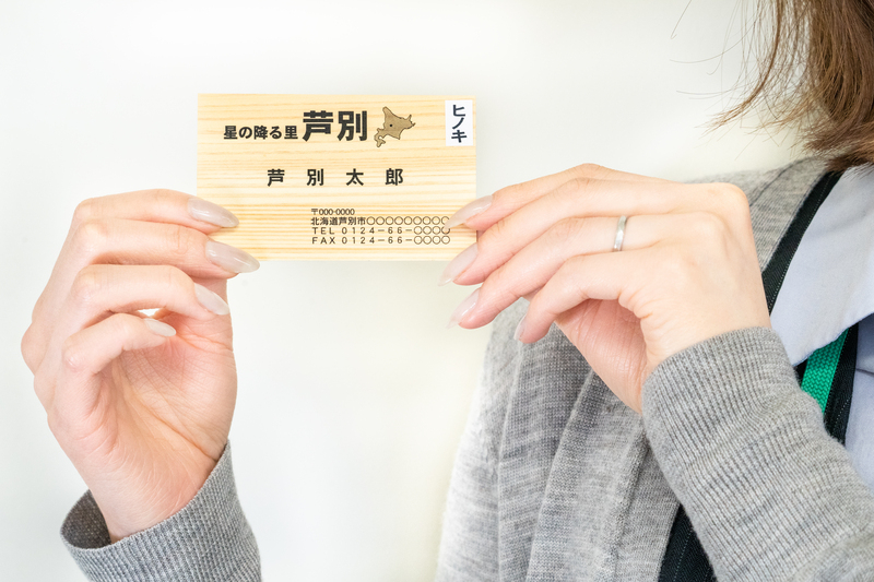 「木の名刺」は、木の温かみ、香りにより渡された人に強い印象を与えます。