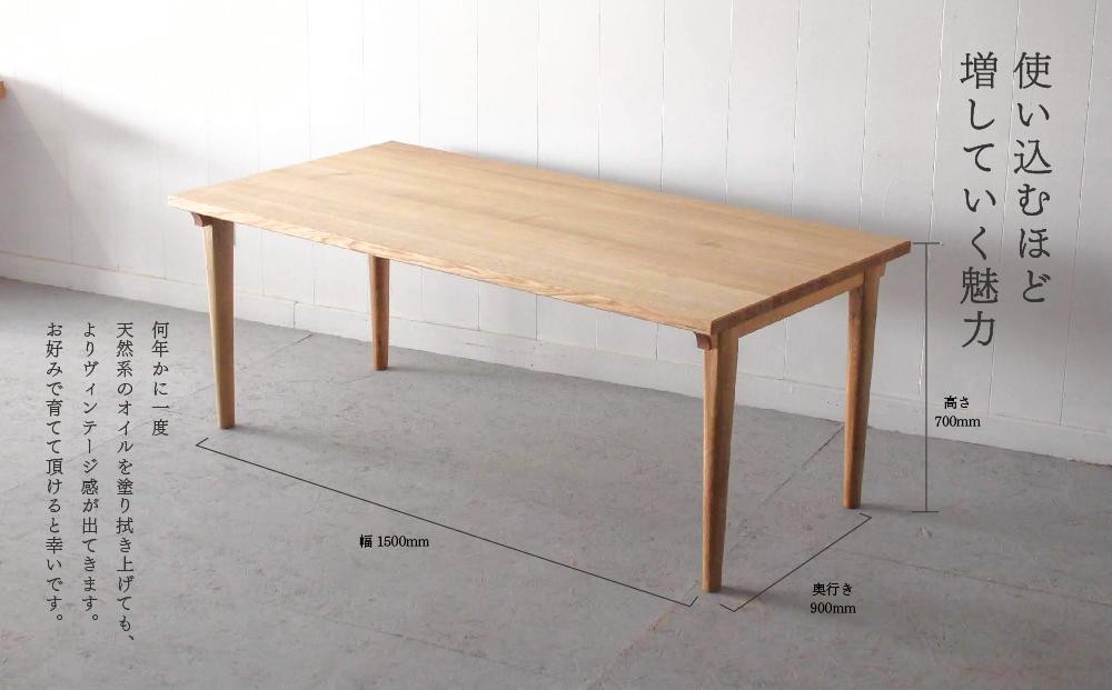 ダイニングテーブル 道産ナラ W1500 北海道 MOOTH インテリア 手作り 家具職人 モダン 家具 家具 家具 家具 家具 家具