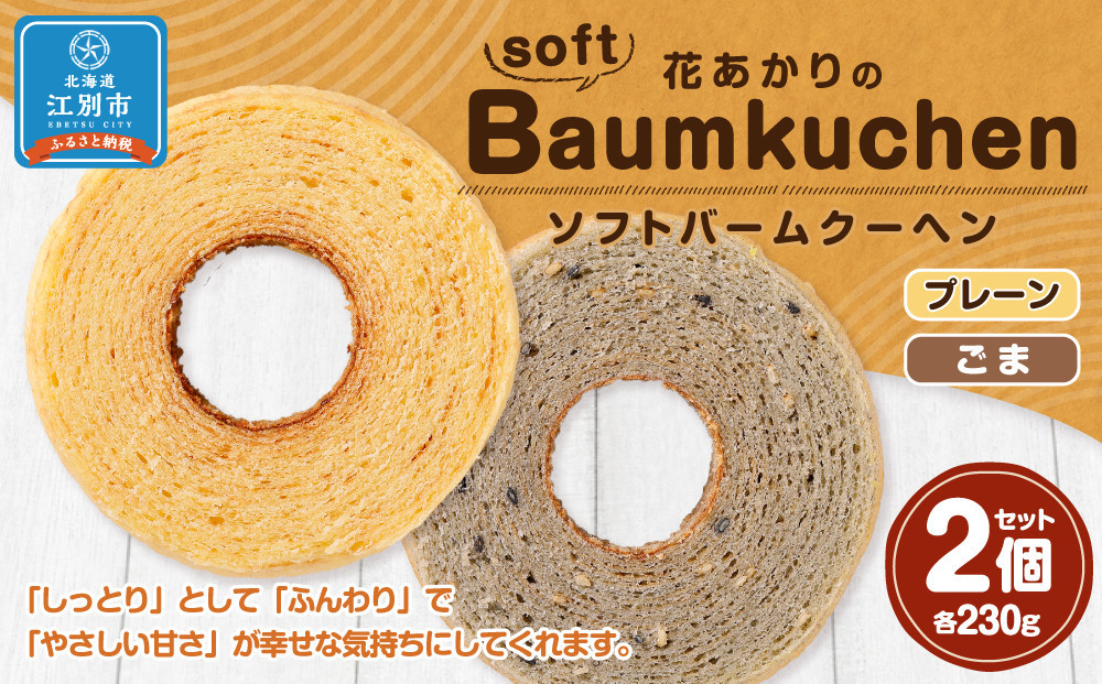 花あかりのソフトバウムクーヘン 2個セット(プレーン&ごま)