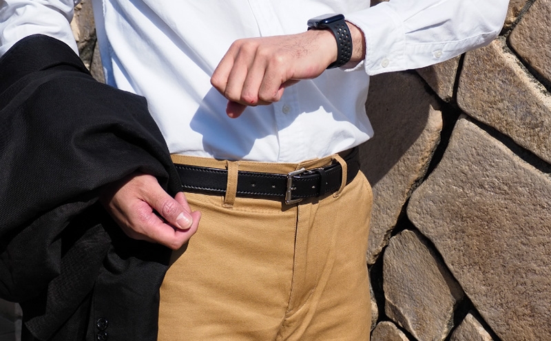 なめしたそのままの厚さ(4ミリ)の1枚革を贅沢に使用したベルトです。いたがき製品で最も丈夫な背中から尻にかけての部位の革で作られており、1枚の革から作れるのは数本ほど。