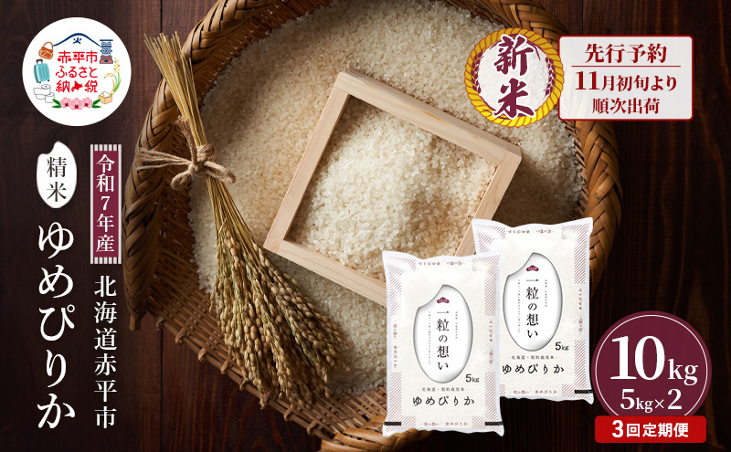 【先行予約】令和7年産 北海道 赤平産 ゆめぴりか 10kg 3ヵ月連続お届け 白米 精米 米 北海道 ごはん ご飯 ライス おにぎり 定期便 定期 お楽しみ 3回