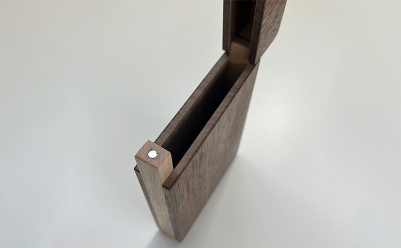 表面にウォールナット材、側面に北海道産メジロカバ材を使用した名刺入れです。