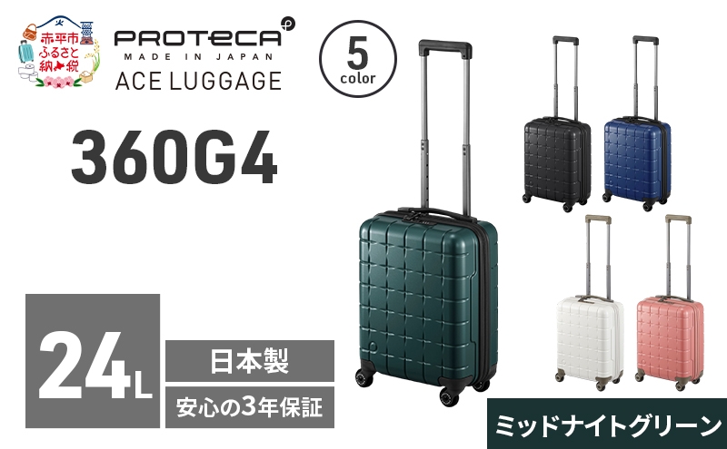 360G4 40 TR 02420 (04 ミッドナイトグリーン) スーツケース 国産 日本製 24L キャリー バッグ コインロッカー 機内持ち込み 出張 短期旅行 PROTECA 北海道 赤平市