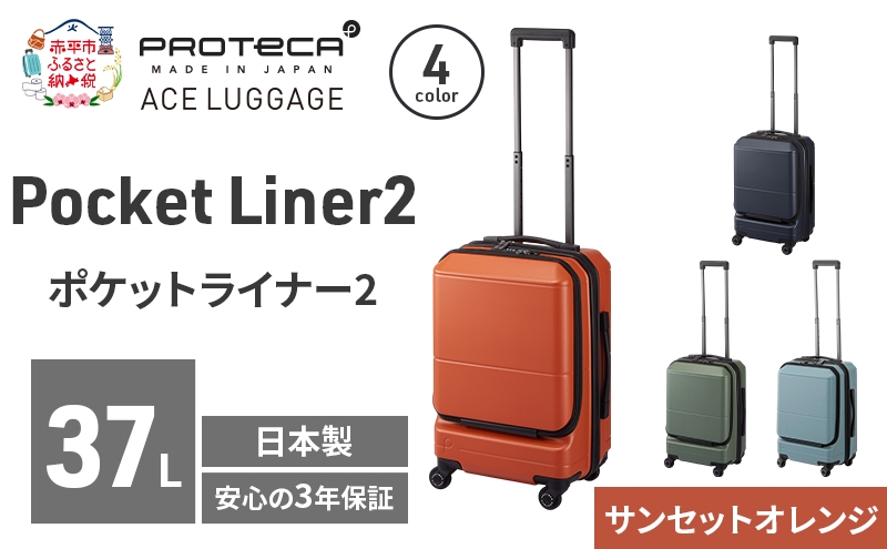 Pocket Liner2 48 TR 01341 (08 サンセットオレンジ) スーツケース 国産 日本製 37L キャリー バッグ 機内持ち込み キャスターストッパー 出張 短期旅行 PROTECA 北海道 赤平市