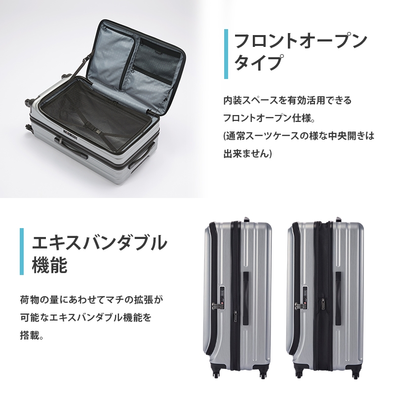PROTeCA フレスター EX 01553 (02 ガンメタリックヘアライン) スーツケース 国産 日本製 76/89L キャリー バッグ キャスターストッパー フロントオープン 出張 長期旅行 北海道 赤平市