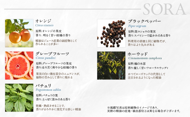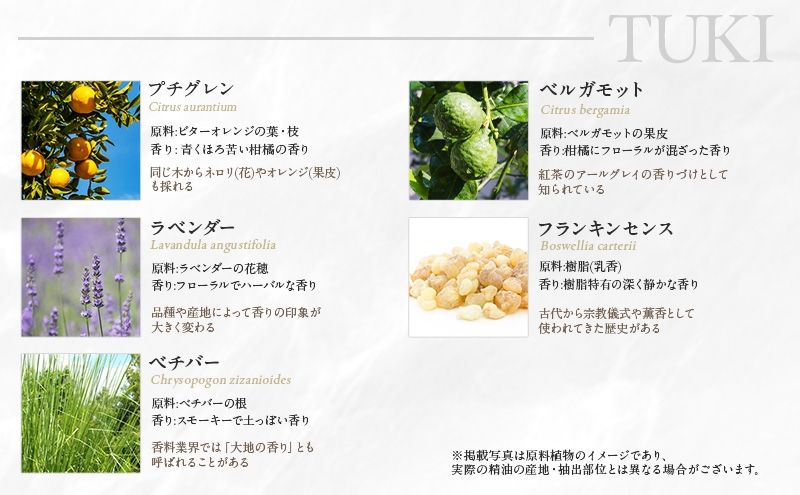 清涼感のある植物と爽やかな果物の精油によって、爽快感のある香りに仕上がりました。