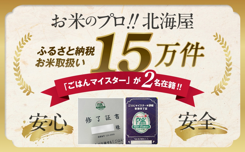 【年内配送12月15日入金まで(オンライン決済限定)】 【『訳あり』でもおいしいお米!紋太オリジナル米15kg。】 お米の味を逃さないよう、玄米の「定温保管」・ご入金確認後に「低温精米」をした、つきたてのお米をお届けいたします。 ≪【訳あり】の理由≫ (1)このお米は農産物検査を受けていない「未検査米」です。 →農産物検査とは「お米の品質・等級・産地」の検査の事で、味や安全性の検査ではありません。 北海屋で取り扱う北海道で最も作付面積の多い銘柄米と遜色のない高品質なお米をお届けします。 (2)「品種・年産」を表示できません →検査を受けていないため「未検査米」となり、説明や包装に「品種・年産」を表示できません。 未検査米は「単一」の品種でも【複数原料米】と表示されます。 法律上のルールのためご理解願います。 (3)低コストを重視される方にお薦めです。 →検査の費用や手間がかからない分、同品質の銘柄米に比べて低コストです。 ●品種:未検査米 ●産年:未検のため明記なし(都度農家さんより仕入れています!) ●原産地:国内産(北海道の農家さんに直接引き取りに行ってます。) ●使用割合:複数原料米100%(未検査米のためこちらの標記になります) ●品質:北海屋で取り扱う北海道で最も作付面積の多い銘柄米と遜色のない高品質なお米をお届けします。 ≪北海屋の「旨み」を守るための3つのルール≫ 1.低温精米 通常の精米機の場合、お米が熱くなり旨みを逃がしてしまいます。北海屋では熱を最小限に抑えてお米の旨みを逃がさない、低温精米機を使用しています。 2.定温保管 お米は15度以上になると急激に酸化し、味が著しく落ちてしまいます。北海屋では農家さんが作ったお米の旨みを損なわないよう、玄米仕入れから精米後まで15度以下での保管を徹底しています。 3.いつでもつきたて お米は精米後、時間が経ってしまうとどんどん味が落ちていきます。少しでも長く美味しい期間を保てるよう、北海屋では申し込みを承ってから精米しています。 ※画像はイメージです。