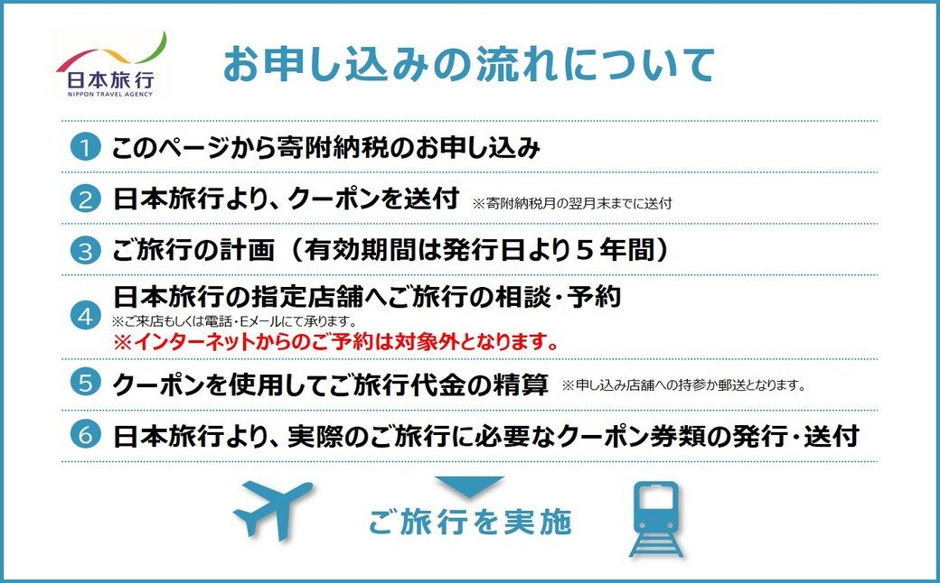 ■寄附のご入金確認後、利用に関する案内書面とともに「旅行クーポン」を郵送にてお送りします。