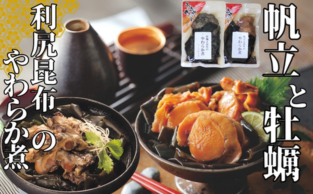 チョイスPayポイントと交換できる品 10-540 【お手軽調理】帆立と昆布のやわらか煮・牡蠣と昆布のやわらか煮 ハーフサイズ各1個【紋別漁師食堂】【化粧箱入り】