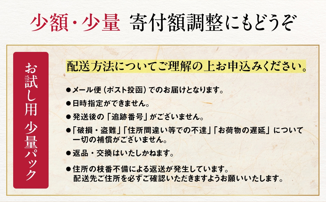 ★こちらはお試し用少量パックです。配送方法についてご理解の上お申込みください★