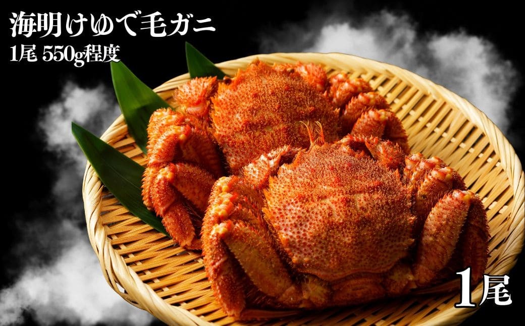 北海道オホーツク海でとれた海明け毛ガニをお届けします。 身がぎっしり詰まった1杯550g前後の毛ガニを職人が塩加減抜群にゆで上げ、急速冷凍。毛ガニの乾燥を防ぐために氷の膜を施しています。 解凍後の味をそこなわず、ゆで上げと変わらぬ美味しい毛ガニをご堪能いただけます。 ※画像はイメージです。