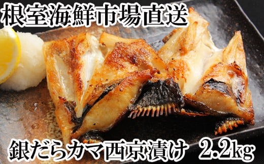 銀だらの「カマ」の部位を西京漬けにしました。2.2kgのお届けとなります。個包装無しの大袋タイプでのお届けになりますので、到着後は小分けにして冷凍庫で保管ください。