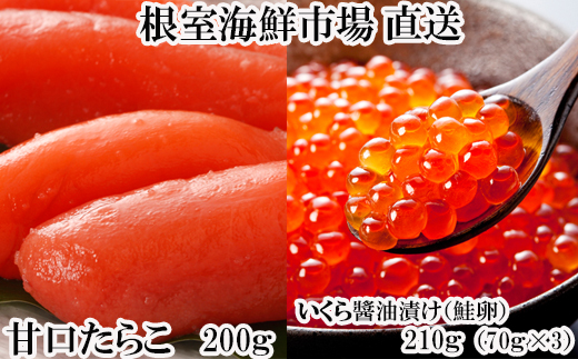 いくら醤油漬け70g×3P、甘口たらこ200g×1Pのセットをお届け致します。 北海道 根室 ふるさと納税 いくら イクラ