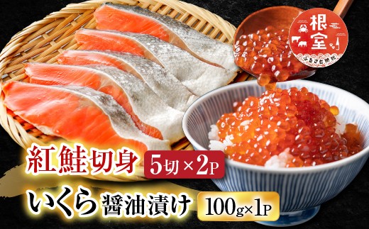 A-70028 いくら醤油漬け100g×1P、紅鮭切身5切×2P