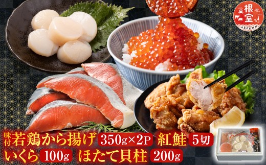 B-30022 味付若鶏から揚げ350g×2P、紅鮭5切、いくら100g、ほた…