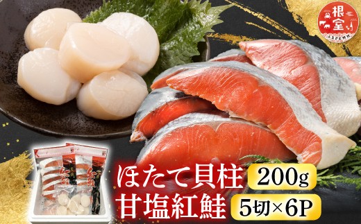 B-30017 ほたて貝柱200g、甘塩紅鮭5切×6P