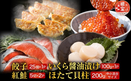 B-30027 餃子25個、紅鮭10切、いくら100g、ほたて200g