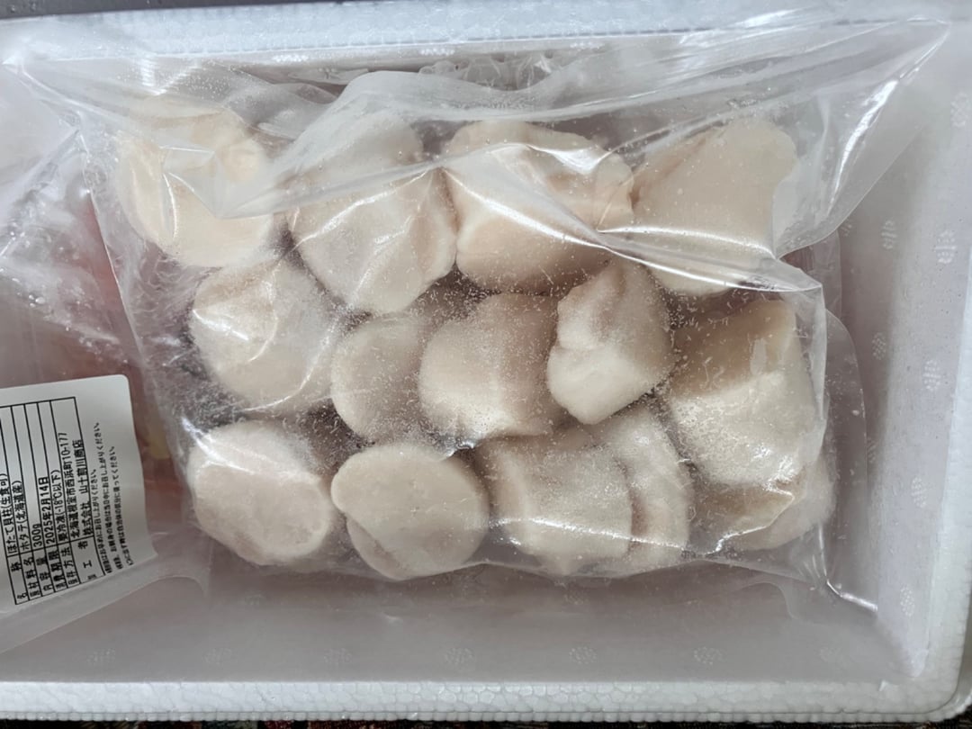 大きな帆立で、お刺身にして食べました。美味しく頂きました。